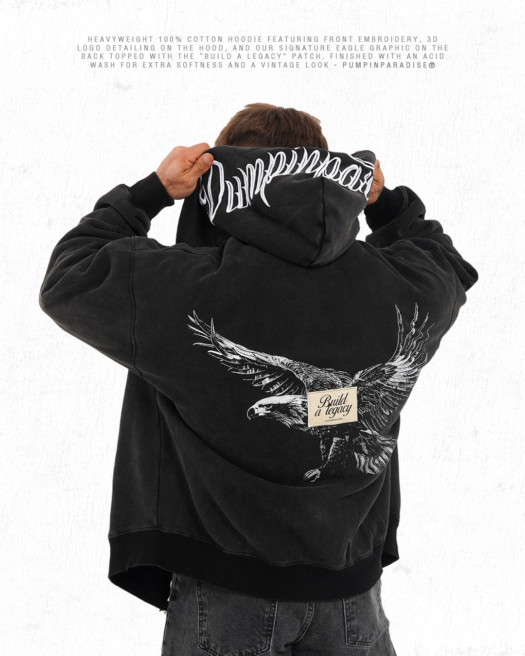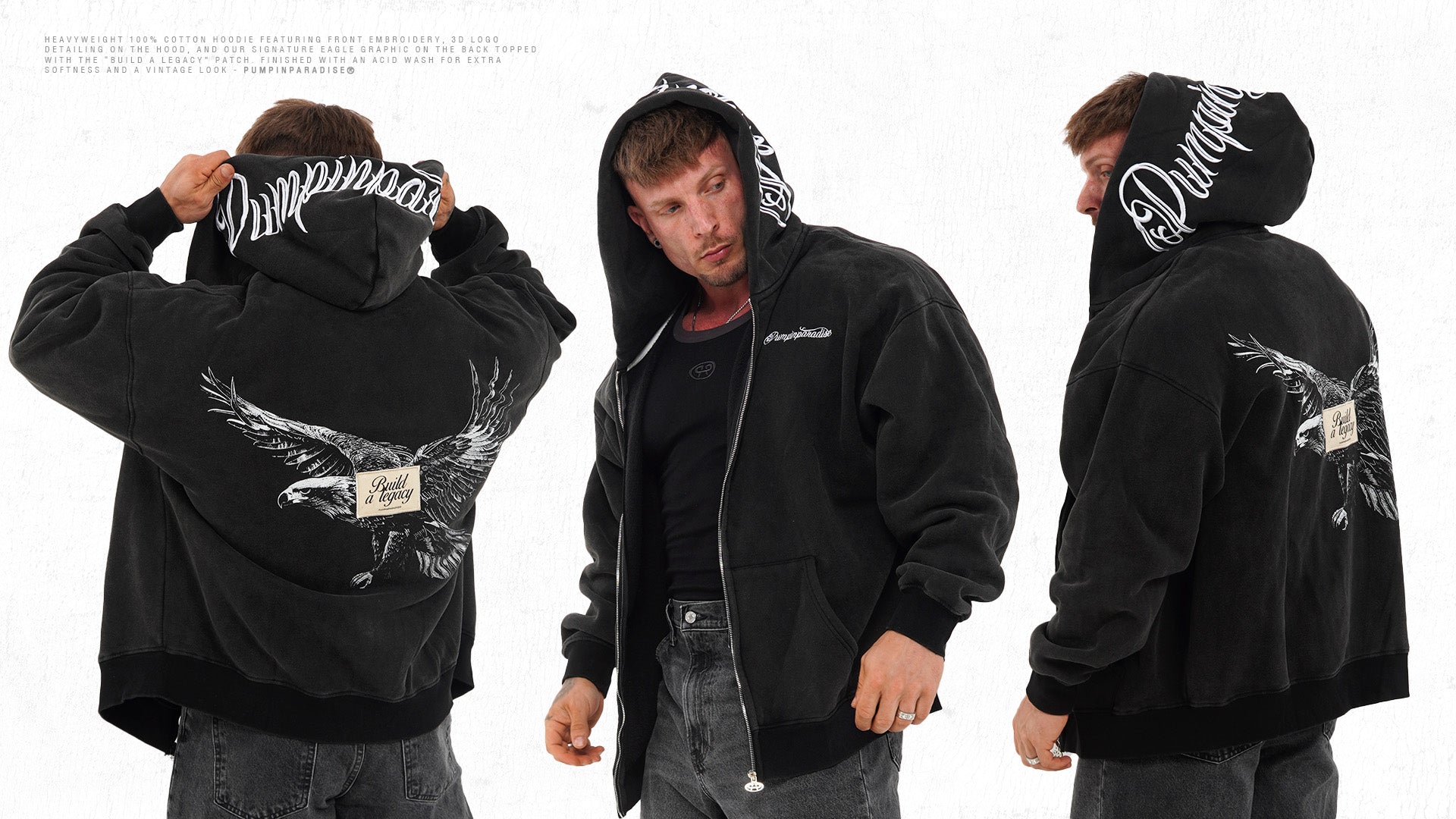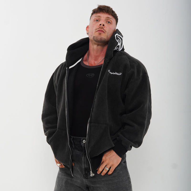 BUILD A LEGACY ZIP UP HOODIE - WASHED BLACK