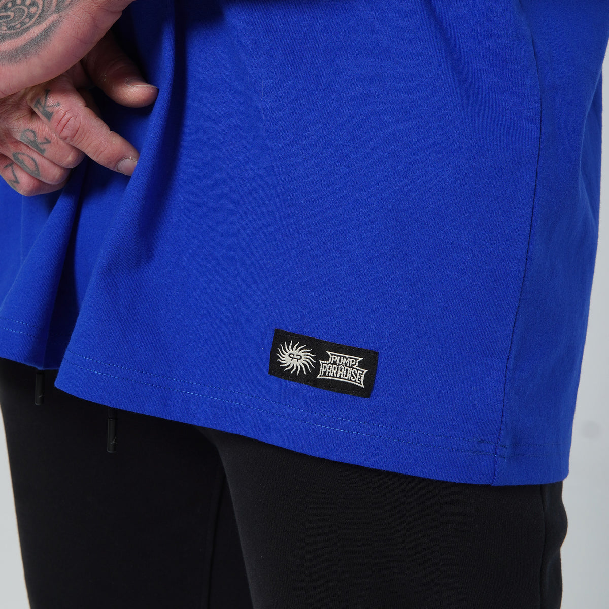 Color especial Royal Blue con el logo bordado en 3D en la parte delantera e impresión en serigrafía en la parte trasera con un diseño único de Pump In Paradise.
