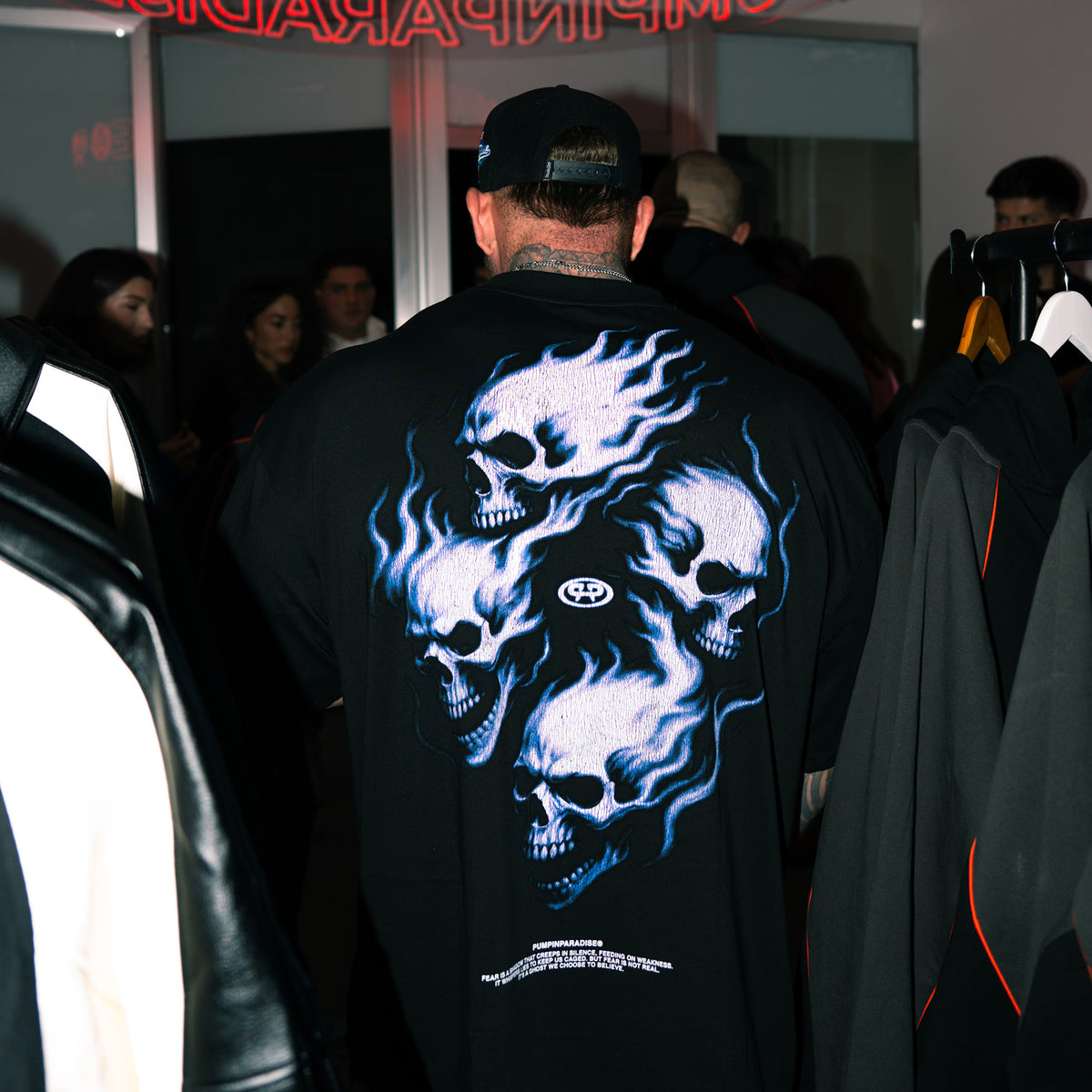 Oversized fit in black with a unique and exclusive Pump In Paradise design.