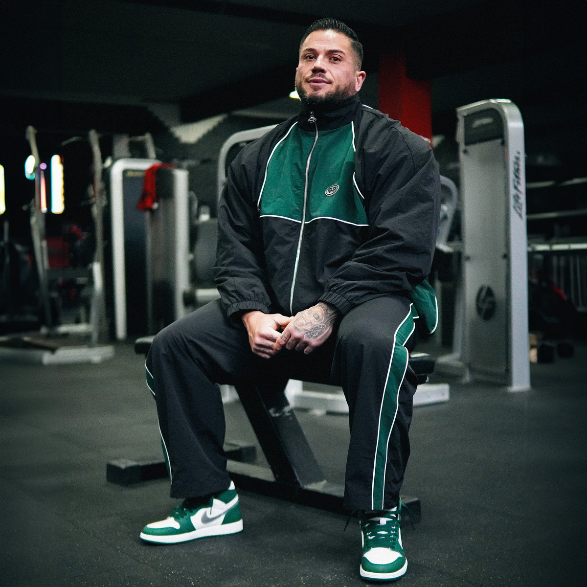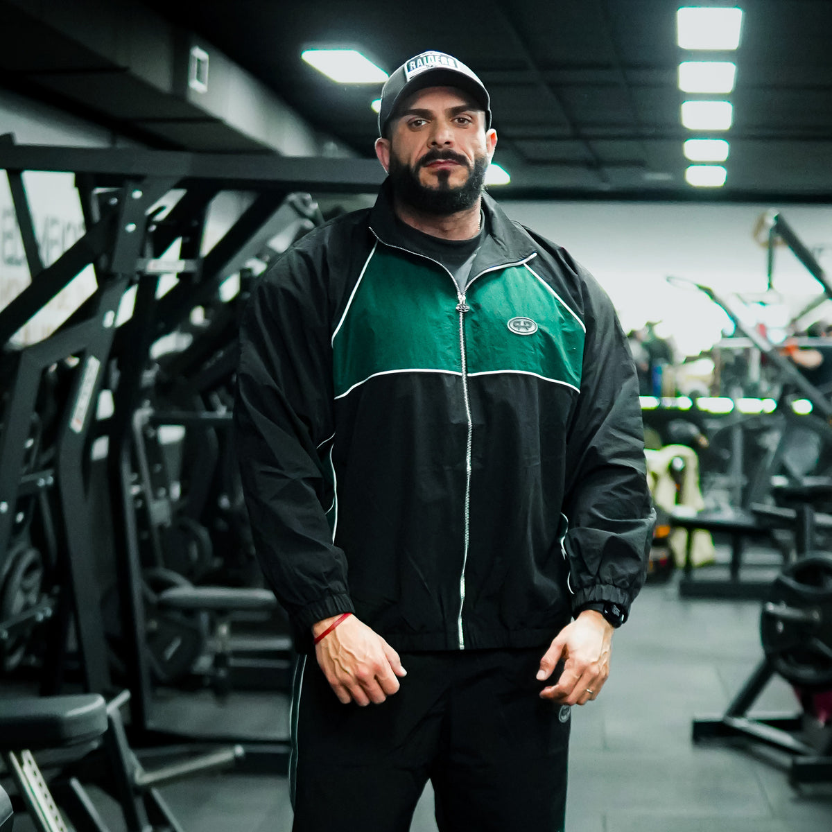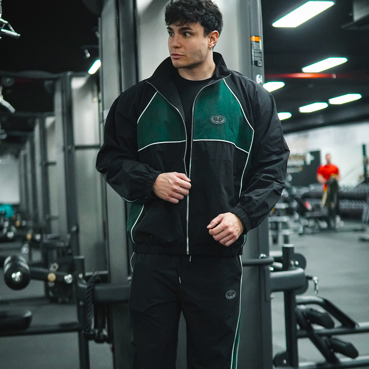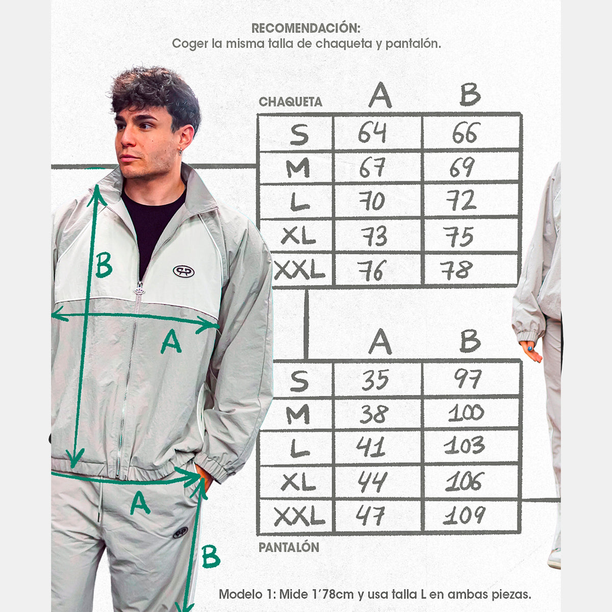 Retro style jacket made of high quality nylon. With a boxy-oversize style, this set offers a touch of elegance and comfort at the same time.