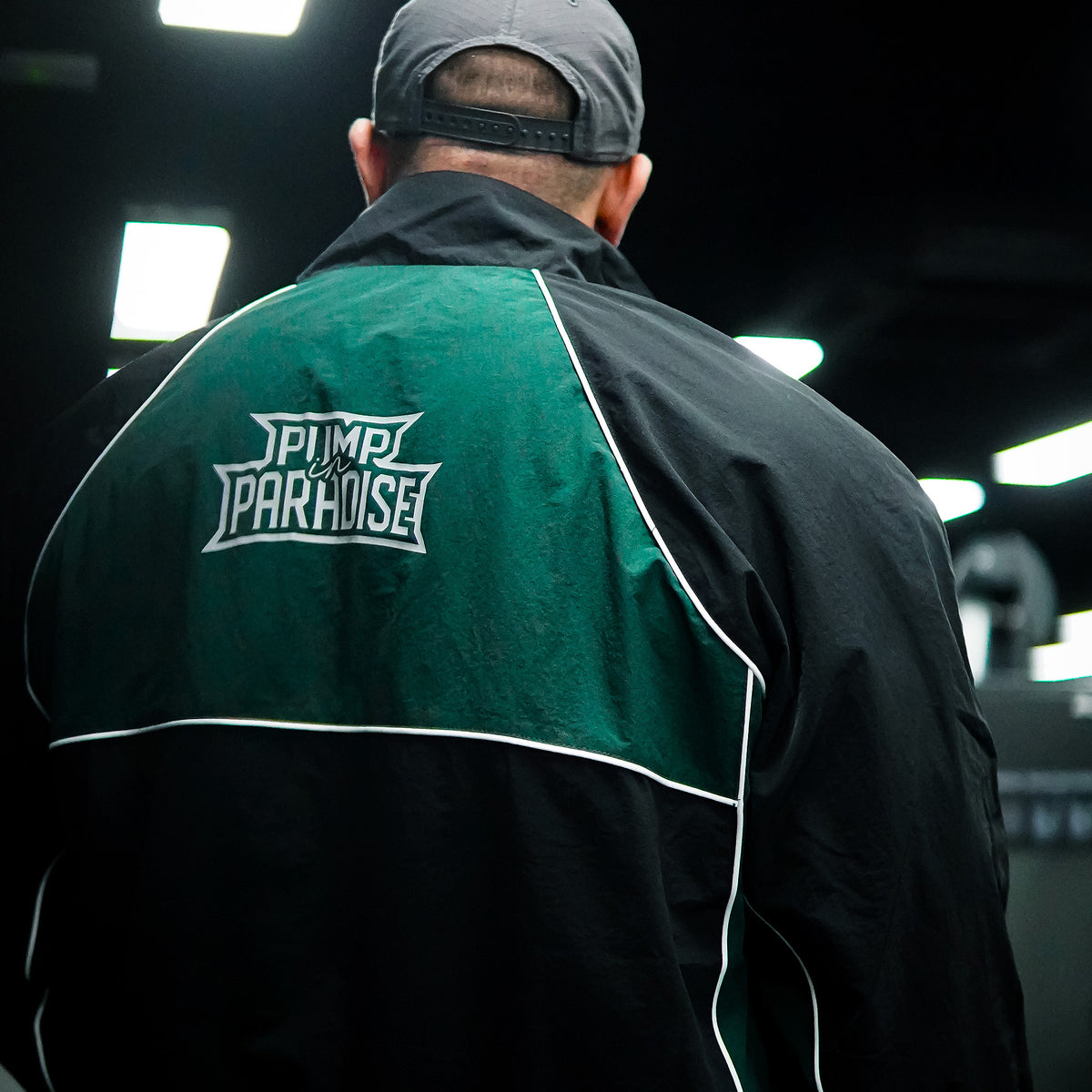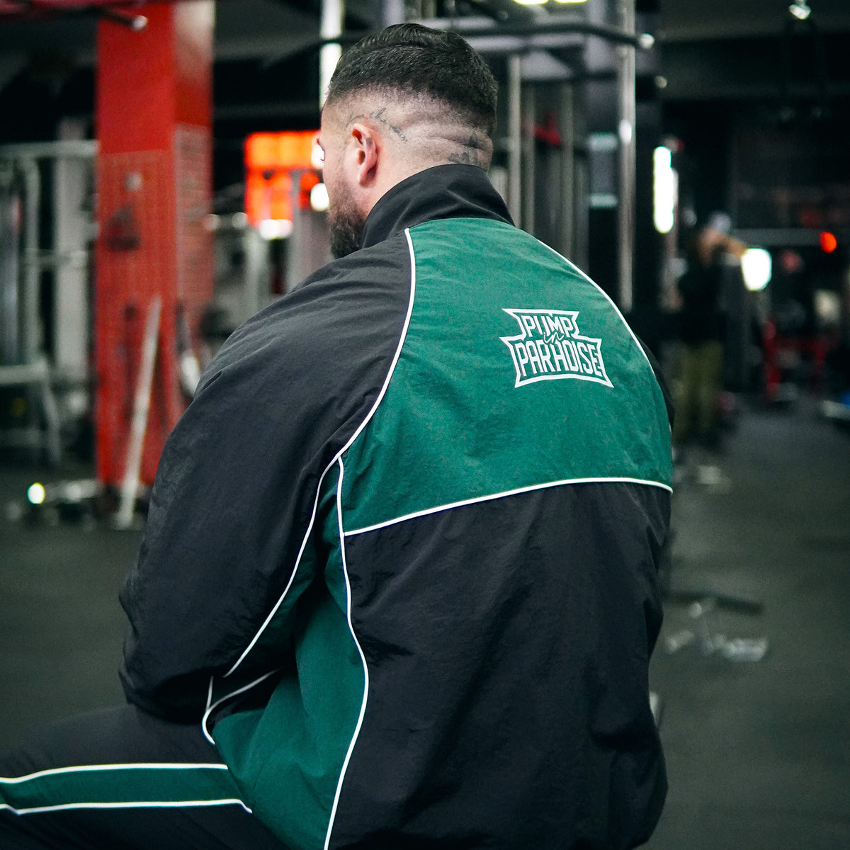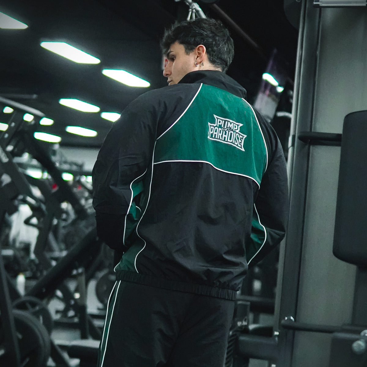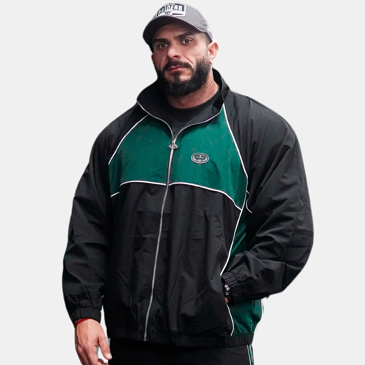 Retro style jacket made of high quality nylon. With a boxy-oversize style, this set offers a touch of elegance and comfort at the same time.