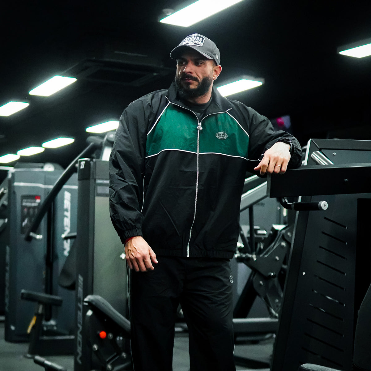 Details such as the metal zipper with the logo, the rubber patch on the chest and the reflective logo on the back make the set something unique.